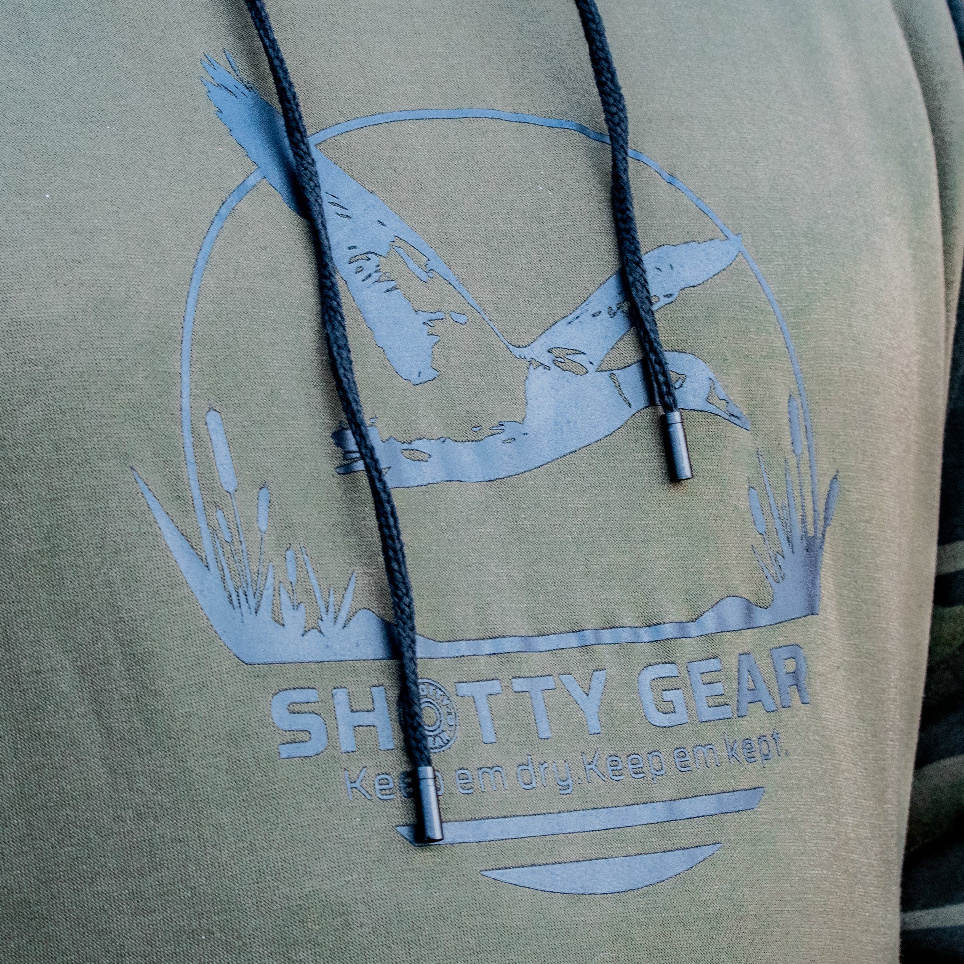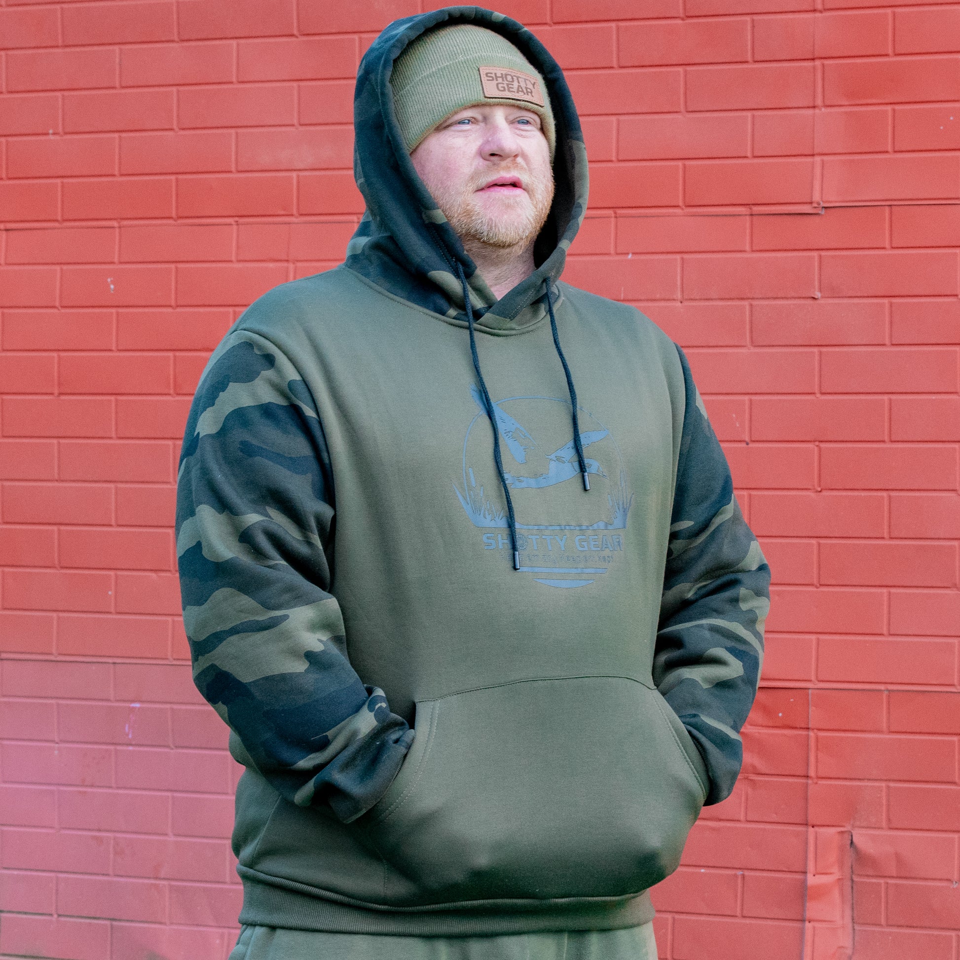 The Shotty Gear Marsh Mallard Midweight Hoodie is designed for the dedicated duck hunter. Made from 100% polyester, this durable hoodie offers a perfect balance of warmth and breathability, ideal for those cooler mornings in the blind. Featuring camo sleeves and the iconic Marsh Mallard logo on the chest, it blends performance with style, ensuring you're both comfortable and ready for action in any setting. A must-have for those who live for the hunt.