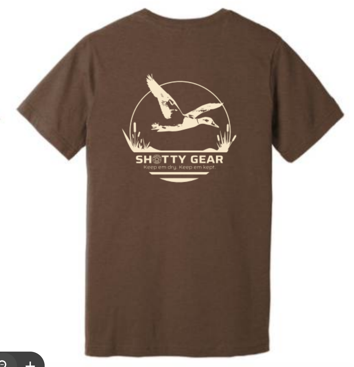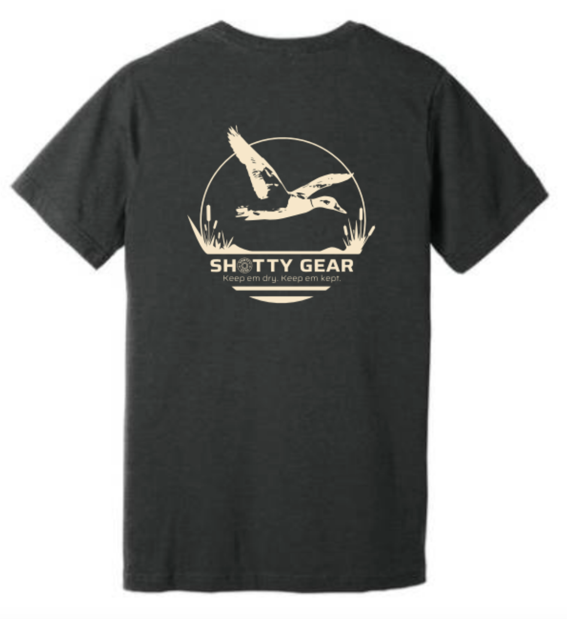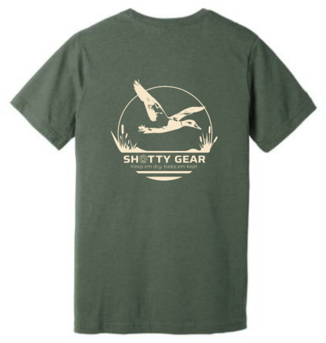 These 52% cotton and 48% polyester are a great fitting t shirt with the Marsh Mallard design on the back and Shotty Gear logo on the front left chest.